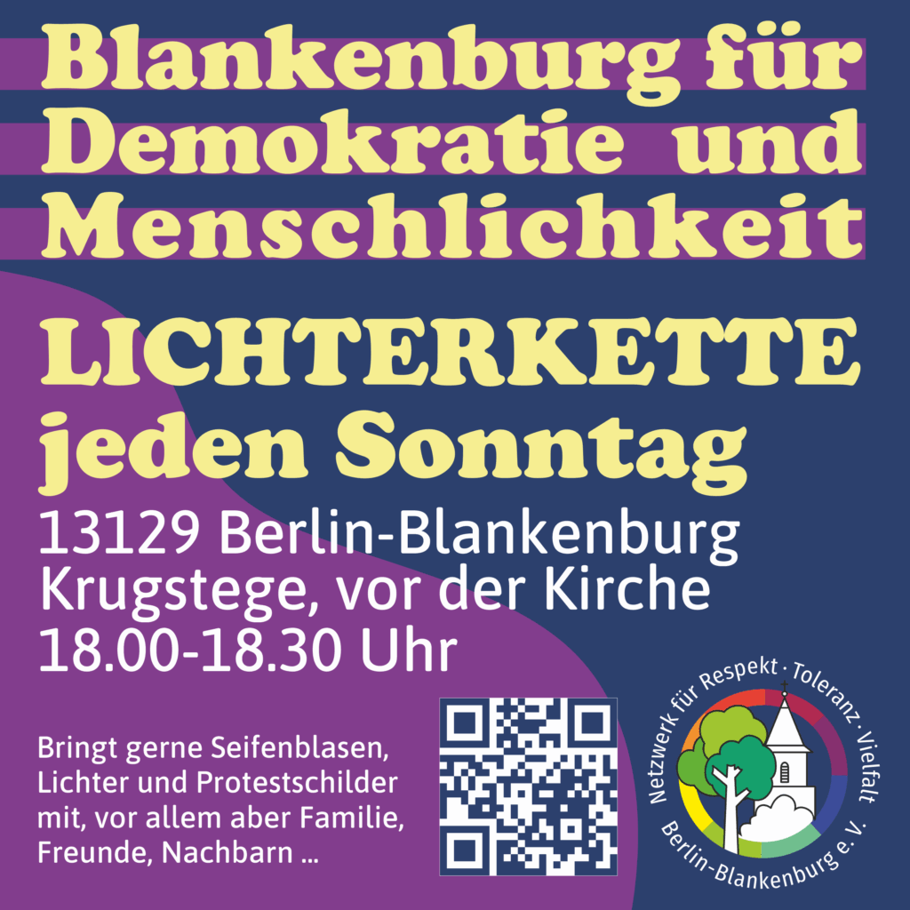 Diese Lichterkette ist unser wöchentliches Zeichen für Vielfalt, Toleranz, Respekt und Menschlichkeit. Besonders in einer Zeit, in der diese Werte von einigen in Frage gestellt werden und versucht wird, Hass und Hetze in Blankenburg zu verbreiten. Unsere Aktion ist eine wichtige Ermutigung und Stärkung für alle, die für ein verständnisvolles Miteinander aller eintreten.